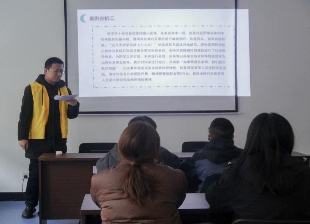 3月9日,学院组织开展了“法润校园 零暴同行”普法宣讲进社区活动。为学习贯彻法治理念,志愿者们走进秦皇岛市海港区竹海社区,开展普法宣传活动。志愿者们举办了小型法律讲座,以通俗易懂的案例解读法律条文,现场解答居民疑惑,以自身行动助力提升居民法律意识,传递反对校园暴力的力量。