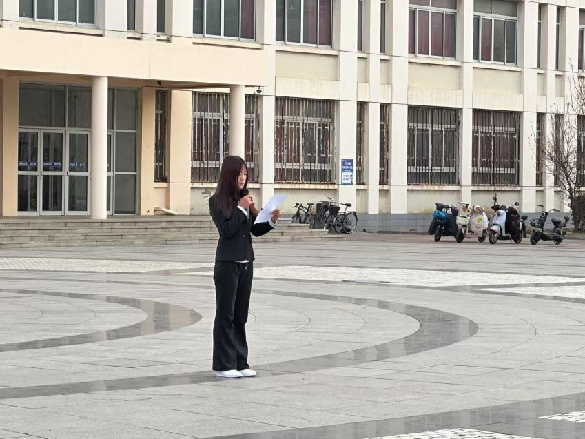 2024级音乐表演1班郭安娜作为学生代表在国旗下发言。她表示,青春因奋斗而精彩,时代因担当而辉煌。作为新时代大学生,应勇担使命,以勤奋钻研的态度面对学业,以开拓创新的精神迎接挑战。