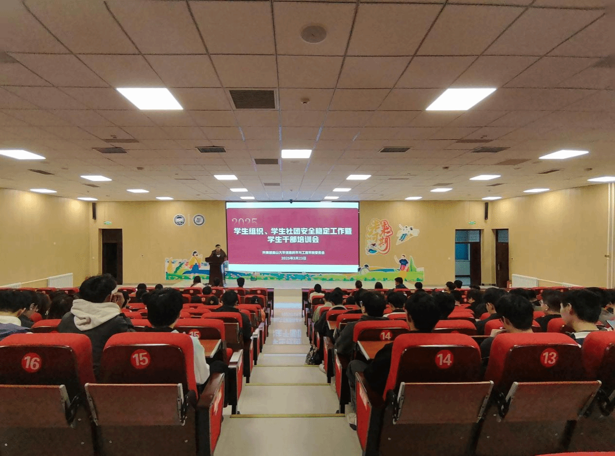 为强化校园安全管理,规范学生组织及社团运行,3月23日晚,信息科学与工程学院在行知报告厅召开学生组织、学生社团安全稳定工作及学生干部培训会。会议由学院团委书记邹楠主持,各学生组织及社团主席团成员及部门负责人等100余名学生骨干参会。