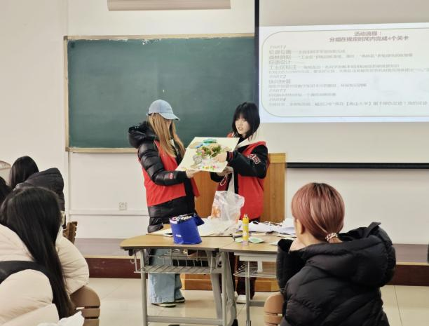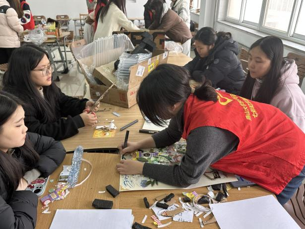 在艺术创作实践活动中,学生们充分发挥专业优势,运用各类废旧材料,制作了以“碳足迹”和“濒危动物”为主题的艺术作品,将环保理念巧妙融入艺术表达,以创意形式展现对绿色发展的思考与追求,使在场同学进一步领会“绿色生活”所蕴含的环保意义及其在日常生活中的实践价值。