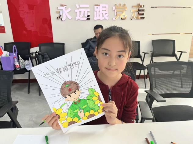 活动中,志愿者采用“影音导学+情境互动”教学模式,通过雷锋影像资料让孩子们直观感受到“螺丝钉精神”的时代内涵。在绘画实践环节,志愿者现场示范雷锋肖像创作,孩子们在老师的指导下,用画笔将内心对雷锋精神的感悟跃然纸上,完成了一幅幅充满创意与情感的作品。