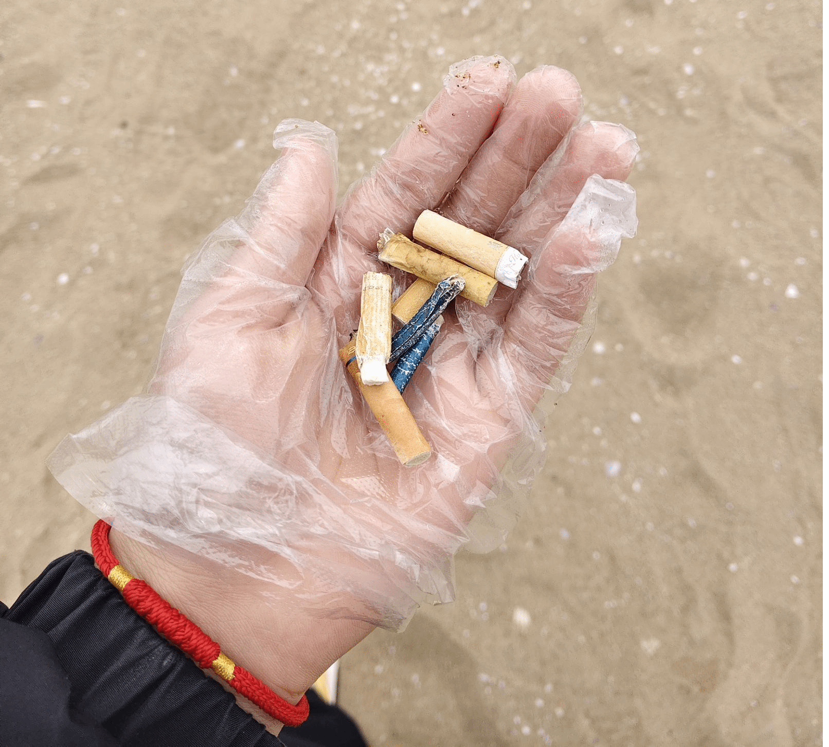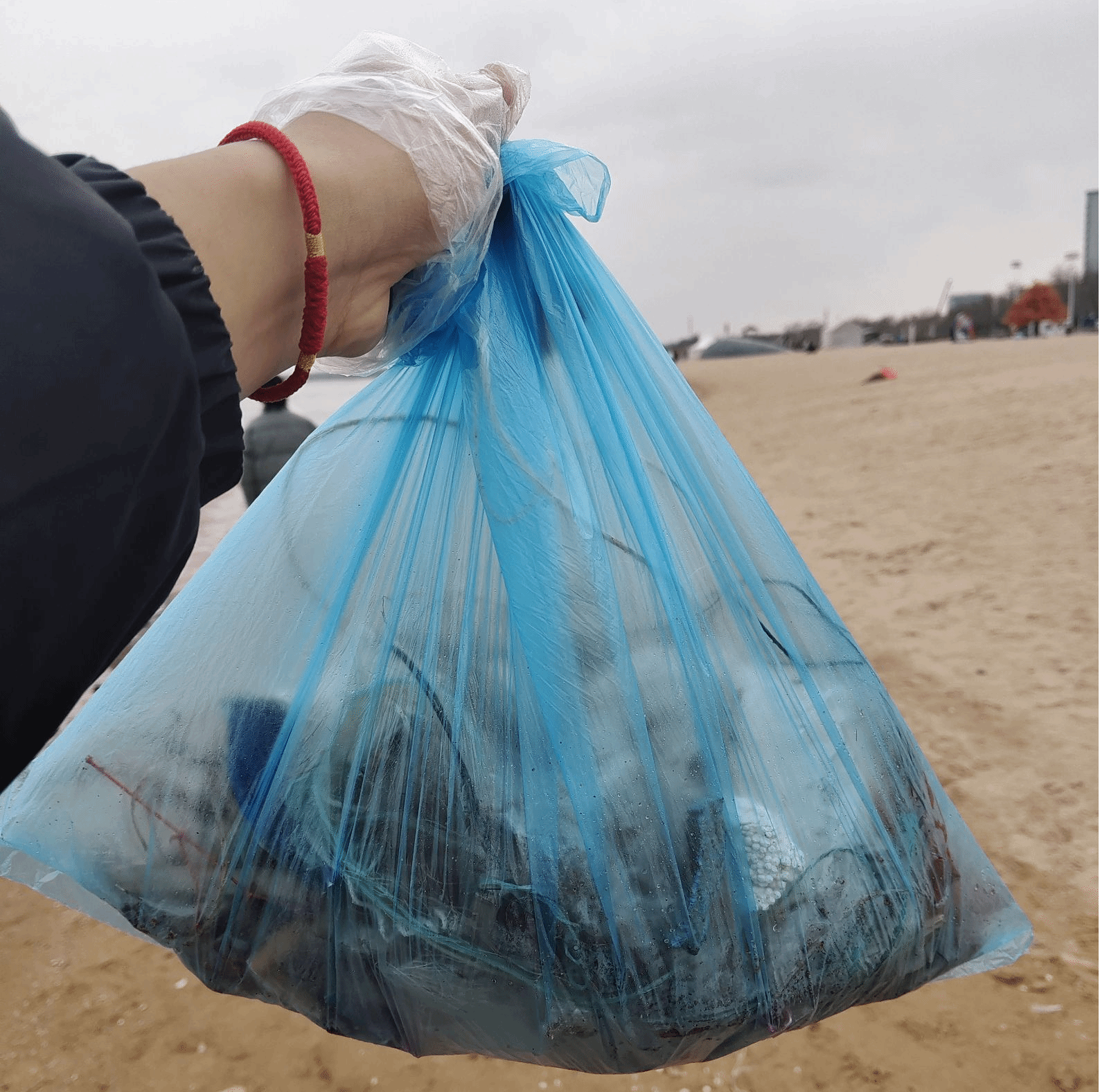 经过三小时的工作,志愿者们专注地搜寻着可以捡拾的垃圾,不放过任何一个角落,清理出的海滩垃圾包括饮料瓶、食品包装袋、吸管等,另有大量烟蒂、破损渔网和玻璃碎片。“每一片塑料都可能成为伤害海洋生物的凶器”,志愿者呼吁游客还海洋生物一个干净的家园,积极动员游客也加入捡拾垃圾的行列中来。