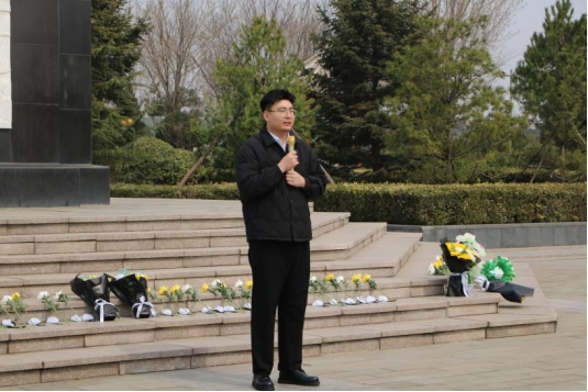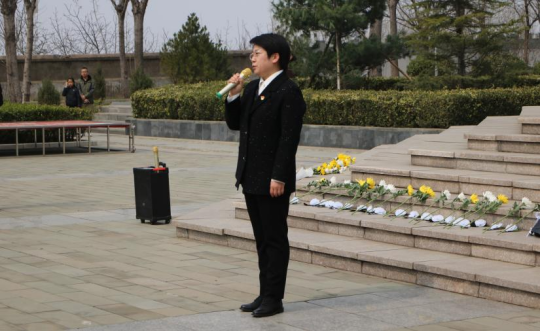 副处级辅导员张颖总结讲话。她表示,此次清明祭英烈主题活动是一堂生动的爱国主义教育课。通过缅怀先烈,希望同学们能够更加珍惜现在的美好生活,将对先烈的追思转化为学习和前进的动力,不忘初心,勇担使命,为实现中华民族伟大复兴的中国梦贡献自己的青春力量。