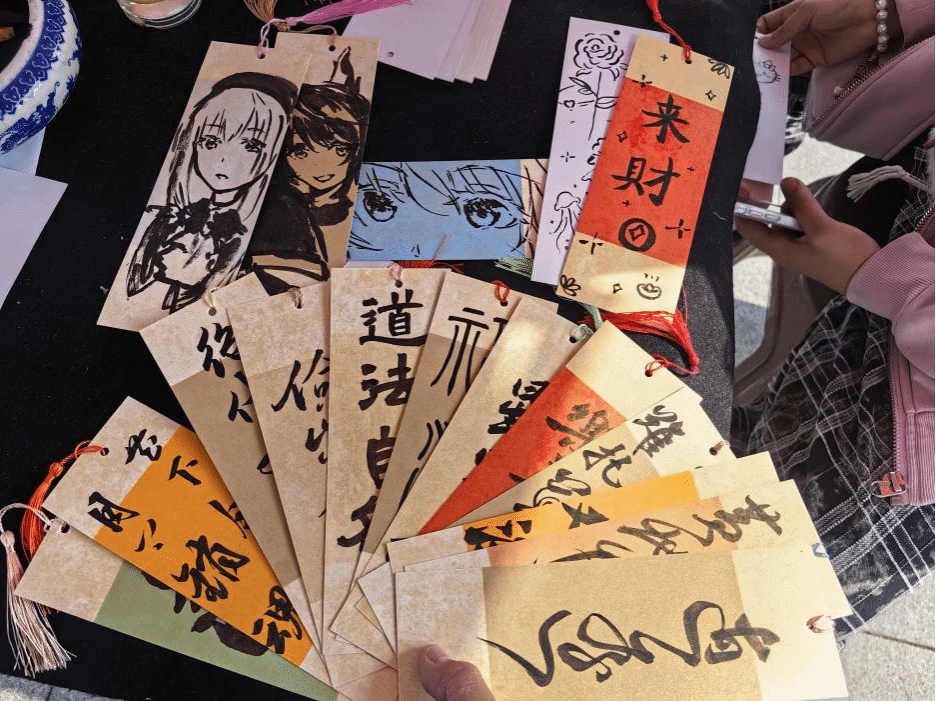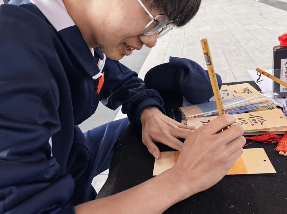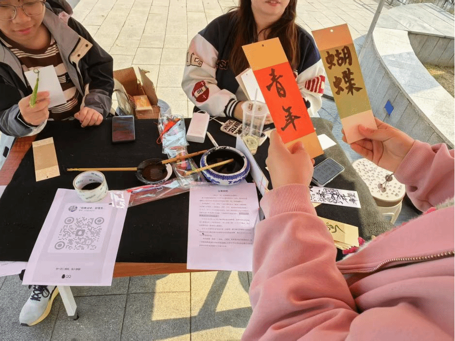 “翰墨抒怀”环节中,参与者应用所抽取到的意象提诗,十余幅古典意象签在春阳下流转—“燕山”“纸鸢”“柳絮”等诗笺承载着千年的美学密码,同学们纷纷展现才华,以诗为媒,以春为景,以“细雨湿流光”为引,在斑驳墨迹中晕染出暮春惆怅;或巧思化用“丁香空结雨中愁”,令抽象诗境跃然纸上。这场跨越时空的诗词对话,使古典文学基因与青春创意迸发璀璨花火。