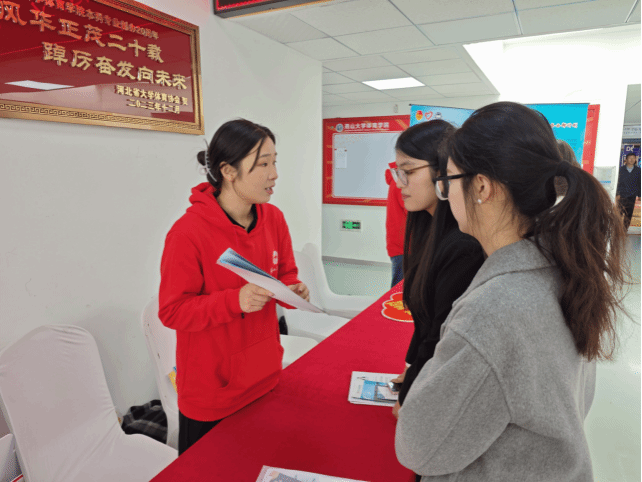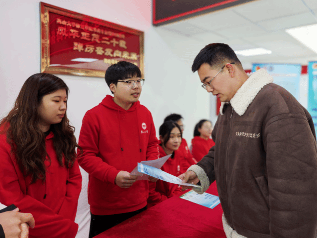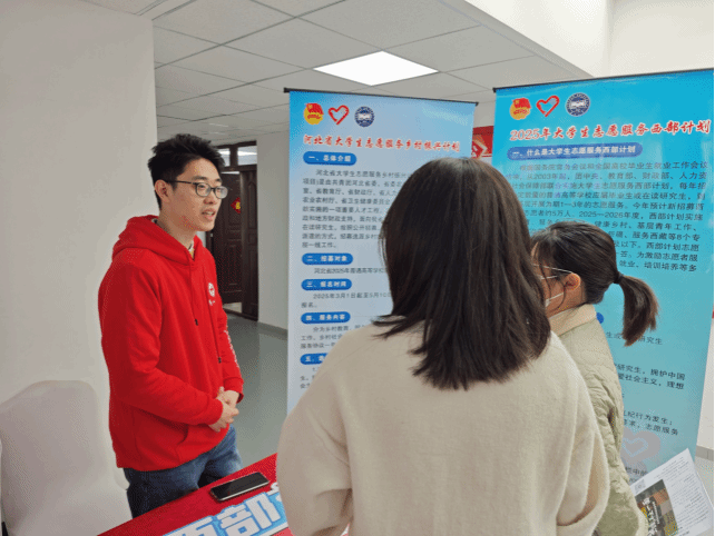 就业专场招聘会的西部计划咨询专区前人潮涌动,气氛高涨,大批怀揣梦想的学子纷纷驻足询问,现场接待咨询人数超200人次,发放宣传资料数500余份。文法学院(公共管理学院)的研究生支教团成员们作为宣传志愿者,手持精心制作的宣传手册,以饱满的热情,为每一位前来咨询的同学悉心讲解2025年西部计划的各项政策。针对同学们普遍关心的政策扶持、报名流程、选拔条件等问题,志愿者们耐心回应、详尽解答,力求让每一位同学都能明晰政策,坚定投身西部建设的信念。