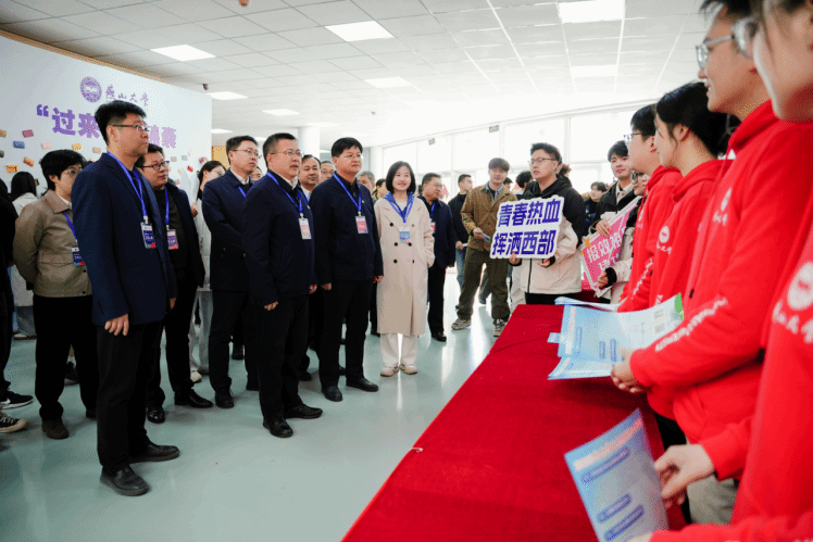 校党委副书记蔡星周,党委常委、副校长汪殿龙等亲临就业专场招聘会,悉心指导西部计划宣传相关工作。蔡星周指出,文法学院(公共管理学院)要充分发挥专业优势,紧密结合共青团组织力量,创新宣传形式,让西部计划的意义与价值深入人心,全力营造踊跃参与西部计划的热烈氛围,引领更多青年学子响应国家号召,奔赴基层、服务基层,勇于到祖国最需要之处施展才华,以坚毅的精神在艰苦环境中砥砺前行,于基层实践的广阔天地中,以实际行动践行青春使命,用奋斗与汗水书写新时代青年的壮丽篇章。