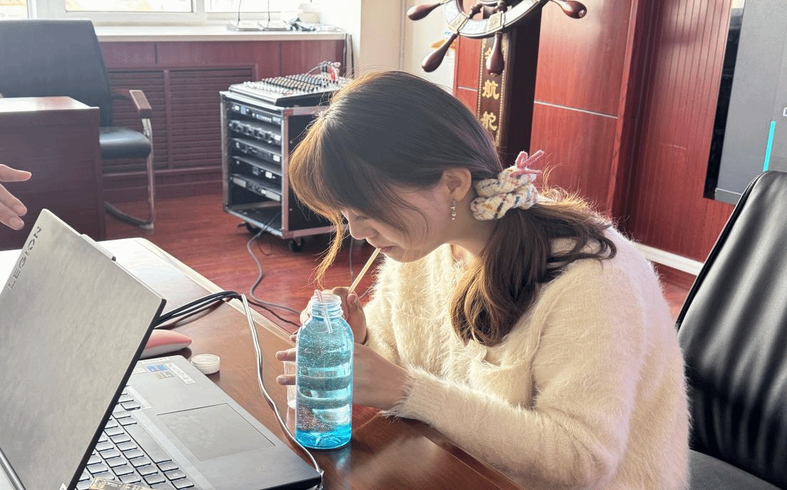 在实验环节,同学们分组协作,按照步骤将色素滴入水中,插入弯折的吸管,再通过另一根吸管向瓶内吹气。当清水顺着吸管“飞跃”到另一个杯子时,教室里爆发出一阵欢呼。“真的流过去了!像魔法一样!”一位小朋友兴奋地喊道。通过亲手操作,孩子们不仅观察到现象,更理解了背后的科学原理——吹气增加瓶内压强,与外界形成压力差,从而驱动水流转移。