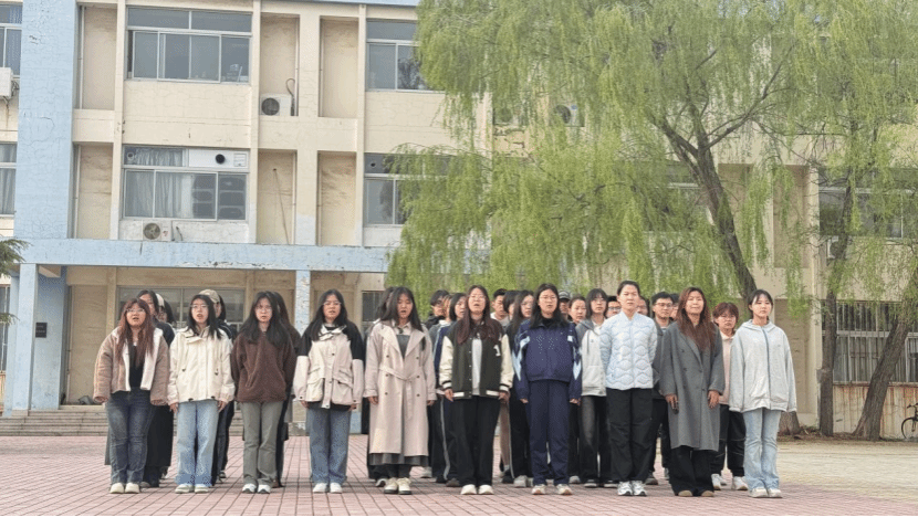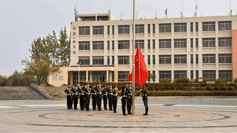 早晨6:45,升旗仪式正式开始。英姿飒爽的国旗护卫队迈着整齐有力的步伐护送国旗入场。他们身姿挺拔、目光坚定,展现出新时代青年的蓬勃朝气与精神风貌。伴随着雄壮的《义勇军进行曲》,在全体同学的注目礼下,鲜艳的五星红旗缓缓升起,迎风飘扬。这一刻,广场上的每一个人都庄严肃穆,心中满是对祖国的热爱与敬意。