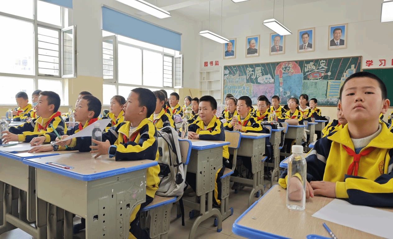 柴达木路小学的小朋友们认真听讲