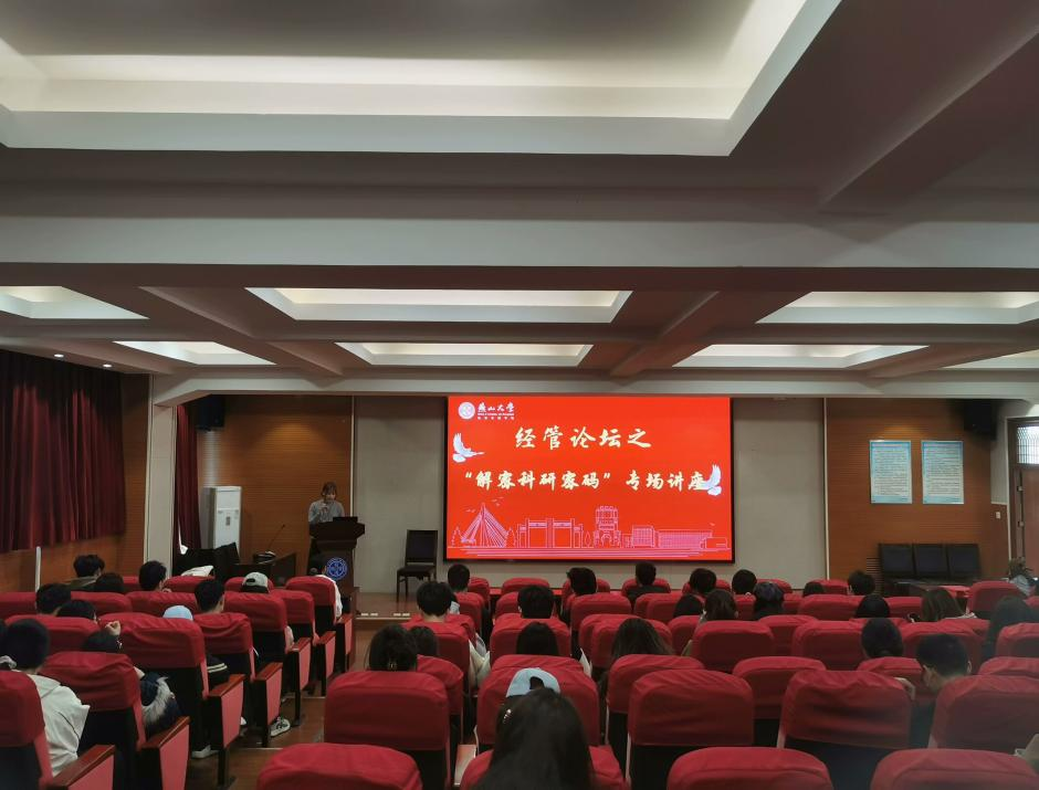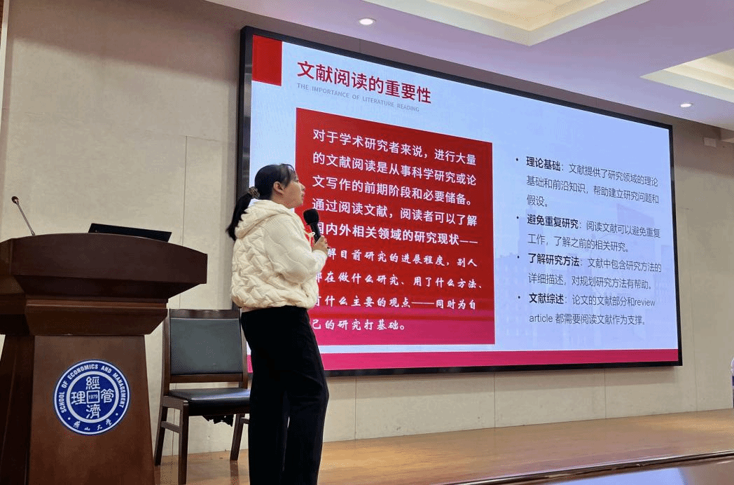 为助力青年学子破解学术研究的“第一道密码”,掌握文献阅读的核心方法论,4月20日上午9点30分,经济管理学院在A218报告厅举办经管论坛之“解密科研密码”专场讲座,聚焦“如何高效阅读文献”。活动由深耕文献研究领域多年的苏妍嫄老师主讲,苏老师在学术期刊发表多篇高影响力论文,主持多项研究课题,对文献阅读、筛选、整理有着深厚造诣与丰富经验,她以丰富的经验与独到见解,为在场师生揭开高效阅读文献的“科研密码”。