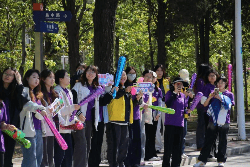 随着发令枪响,师生们如离弦之箭般冲出起点,一张张洋溢着青春活力的面庞上写满了坚定与期待。赛道两旁,拉拉队挥舞彩球、高举标语,此起彼伏的口号声响彻云霄,成为赛场上最动人的背景音。吉他弹唱、青春歌舞等活力四射的表演瞬间点燃全场,引来阵阵喝彩,不仅烘托了现场热烈的气氛,还为运动员们注入了满满的动力与激情。同时,志愿者们热情地为每位参赛选手提供饮用水和能量补给,引导他们有序参赛,并时刻关注选手们的动态,确保赛事顺利进行。