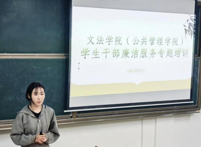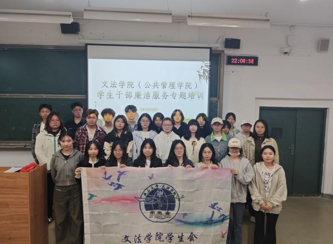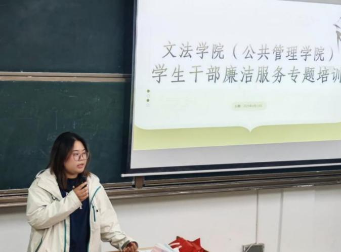 为进一步提升学生干部廉洁服务意识与综合素质,2025年4月26日,文法学院(公共管理学院)在东区二教201教室举办了“清正·守廉”学生干部廉洁服务专题培训。此次培训围绕廉洁教育、服务技能提升以及公仆精神培育等方面展开,旨在引导学生干部牢固树立廉洁奉公的价值观,切实提高服务同学的能力与水平。
