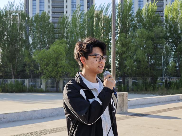 活动第三项,由2024级机械类7班刘昊轩同学领唱《强军战歌》。“听党指挥”的信念与“智能制造”的专业素养交融,化作当代青年建设制造强国的铿锵誓言,机械学子将以机床的精度锻造国防利剑,用创新的智慧筑就钢铁长城。