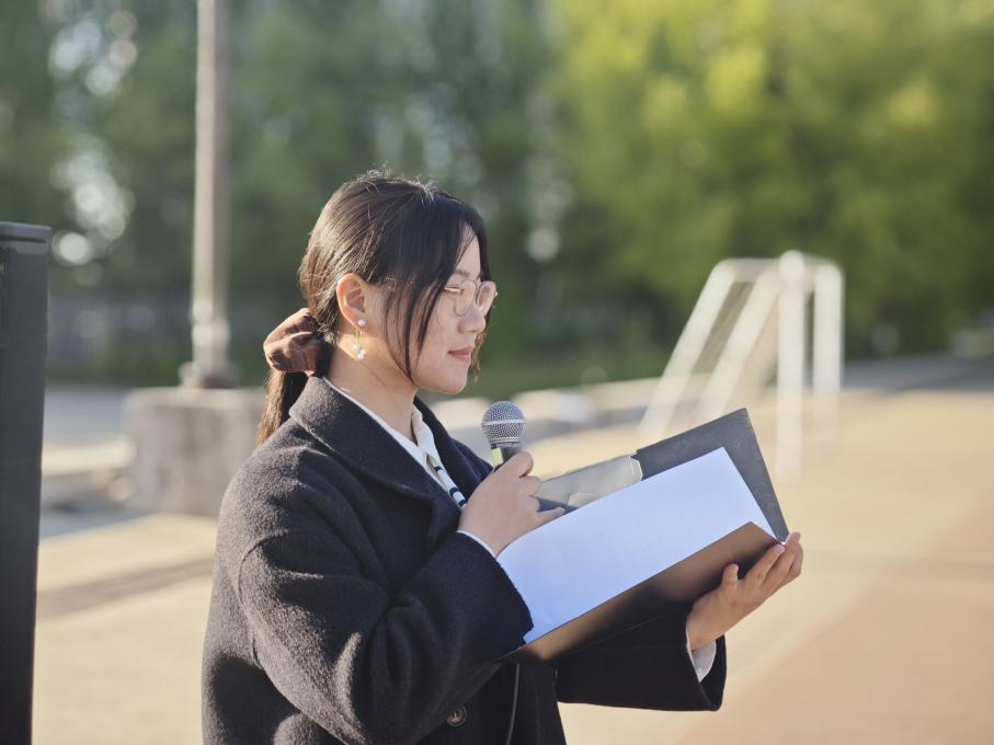 活动第二项,由2024级机械类4班潘钰同学进行国旗下演讲,题目是《劳动托举梦想,奋斗续写华章》。她号召我们要以实干为笔,汗水为墨,在劳动实践中淬炼品格,在艰苦奋斗中谱写新时代的青春答卷。