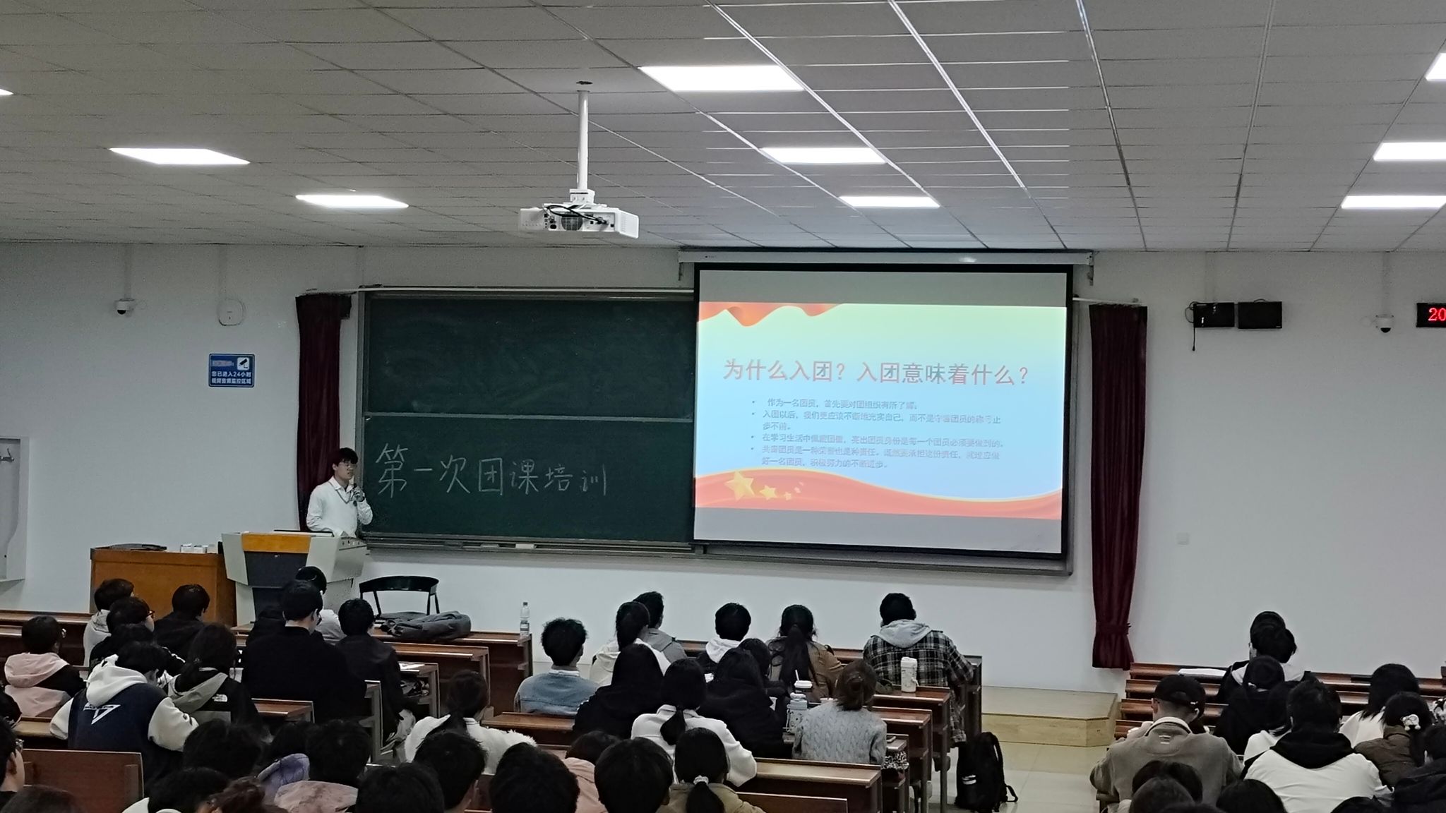 鉴往知来、薪火相传篇:学院团委副书记陈雪涛老师以“青年,你为什么要入团”为主题,为同学们深入讲解团史、党史以及团的基本知识。课堂上,陈雪涛老师通过详实的历史资料、生动的案例分享,带领同学们回顾了共青团与党携手奋斗的光辉历程,引导大家从历史中汲取智慧和力量,深刻理解共青团员的责任与使命。此次团课让同学们对共青团和党的历史有了更全面、更深刻的认识,进一步坚定了理想信念。