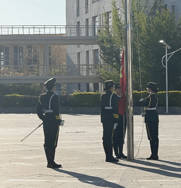 随着仪式的开始,全体学生整齐列队,面向国旗肃立。早上6:40,在雄壮的国歌声中,鲜艳的五星红旗冉冉升起,迎风飘扬。全体同学列队向国旗行注目礼,场面庄严而肃穆。
