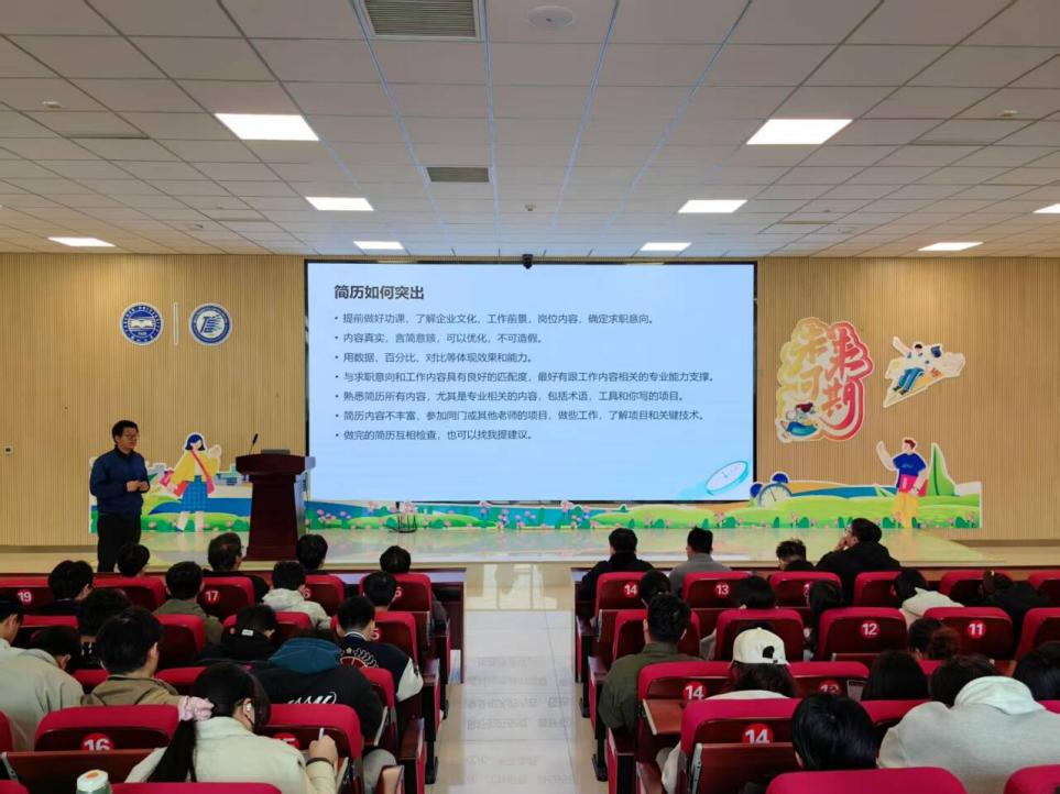 针对就业准备,贾老师结合近年学院毕业生的就业情况,为同学们分析当前就业形势,指导制定个性化的职业规划,撰写有含金量的简历,分享了面试技巧,解读了职场适应策略。