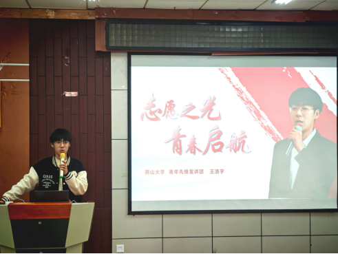 第三次课程邀请乌鸦传媒青年先锋宣讲团王浩宇、段正宇、郭晓美三位成员分享实践经历。王浩宇以“志愿之光,青春启航”为主题,讲述支教凉山、投身企鹅支教的点滴,展现“用一年不长的时间,做一件终身难忘的事”的奉献情怀;段正宇通过“以燕赵风骨淬科研利剑,用创新星火燃时代引擎”的融合叙事,分享担任国防军事训练营总队长与在铁路局太原站、中华人民共和国第二届青年运动会担任志愿者等服务经历,提出“科研理想需熔铸于民族复兴”的青年担当;郭晓美则以17年志愿服务履历,从汶川地震救援到冬奥保障,以“以我之力,造我所愿”的坚守,诠释“聚沙成塔”的志愿力量。三场讲座以“信仰与实践”双线并进,为学员树立了可学可做的榜样标杆。