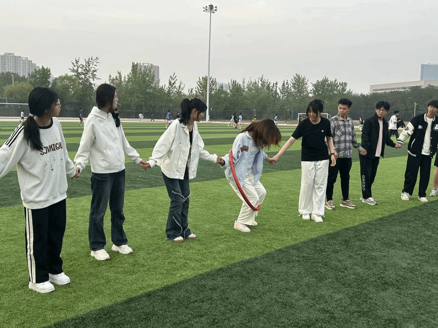 五月的风掠过第三体育场,一场以青春为名的淬炼正在上演。5月12日下午,材料科学与工程学院“熔铸团队魂 赓续五四志”学生干部素质拓展活动如火如荼展开,百余名青年学子以热血为墨、以协作作笔,在汗水与欢笑中书写着新时代青年对五四精神的传承答卷。