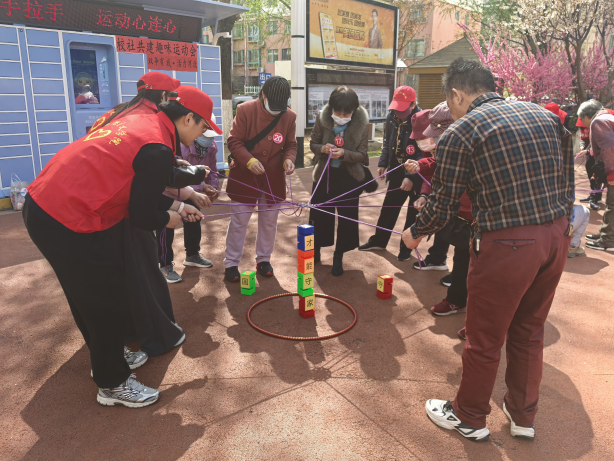 活动当天,志愿者们身穿红马甲抵达社区,协助工作人员搬运器材、布置活动场地,为运动会顺利开展做足准备。比赛期间,志愿者们协助维持现场秩序,并积极参与各项赛事,协助老人完成比赛。本次比赛共有五个项目,合力搭积木、重走红军长征路、不倒小棍、齐心协力接力赛和合力弹小球。在志愿者的帮助下,老人们很快通过比赛。当志愿者大声朗读出老人所拼积木标语“维护国家安全”、“保守国家秘密”时,老人们纷纷鼓掌点赞。在志愿者与老人的热情互动中,现场氛围推向高潮。