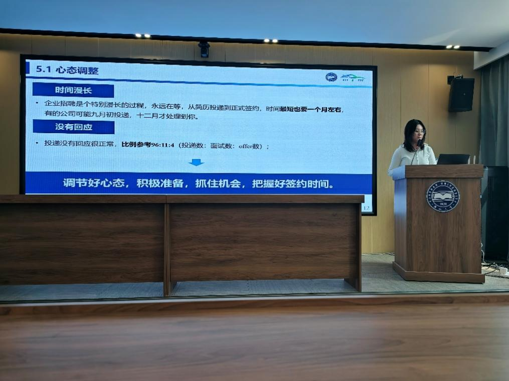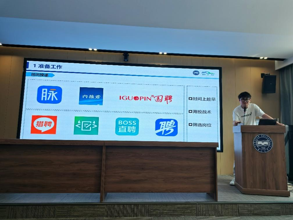 2022级车辆工程专业硕士周和平,现任2022级硕研车辆工程1班班长。他以出色的学术能力发表SCI二区论文一篇,并荣获2024年研究生国家奖学金。毕业后,他选择加入自动驾驶领域的先锋企业——易控智驾,继续追逐科技创新的梦想!他结合入职签约经历,详解五险一金构成比例、薪资谈判注意事项等职场必备知识,特别提醒同学们关注“技术成果转化对薪酬议价能力的提升作用”。在互动环节,周和平以易控智驾招聘流程为例,拆解了技术笔试-项目答辩-HR终面各环节的备战要点,分享了与HR沟通时的实用技巧。