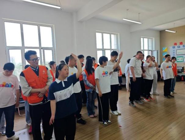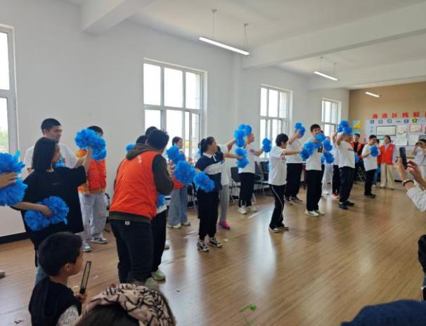 活动高潮部分,全体参与者手持象征包容与希望的蓝色绒球,在志愿者自编的“星空啦啦操”旋律中舒展肢体。不同于传统舞蹈的规范动作,志愿者们以“模仿星星眨眼”“追逐萤火虫”等充满童趣的意象引导孩子们自由舞动。当此起彼伏的绒球在阳光下划出优美弧线,当稚嫩的童声与爽朗的笑声交织共鸣,整个空间化作一片涌动着生命力的蓝色海洋。