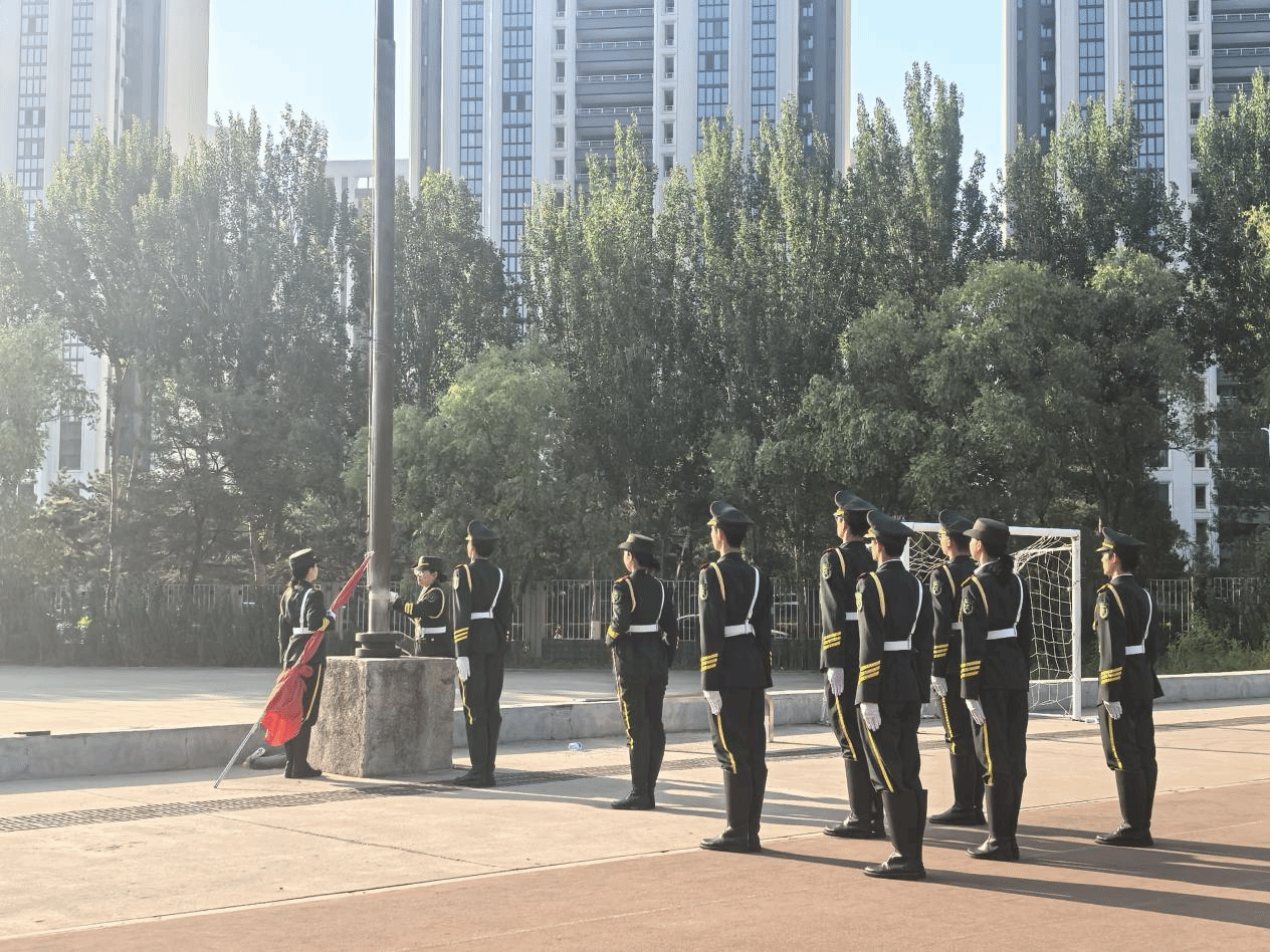 首先,校国旗护卫队迎着晨光,迈着整齐划一的步伐,护送鲜艳的五星红旗走向升旗台。五星红旗随着《义勇军进行曲》的旋律冉冉升起,全体师生肃立注目,齐声高唱国歌,歌声嘹亮,响彻校园。