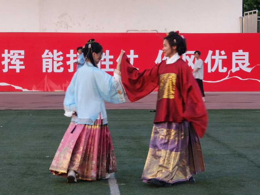 在舞蹈表演环节,身着历代华裳的同学们随着鼓点起舞,衣袂翻飞间仿佛展开了一幅流动的千年画卷,不少同学驻足观赏。汉服不只是历史的缩影,更是活着的文化,活动现场特色鲜明的服饰,搭配鼓点欢快的音乐,让观众们感到了融入当代生活的传统之美。此次活动不仅展示了中华传统服饰之美,更是以创新形式推广了中华传统服饰文化,成为校园丰富文化生活的一大亮点。