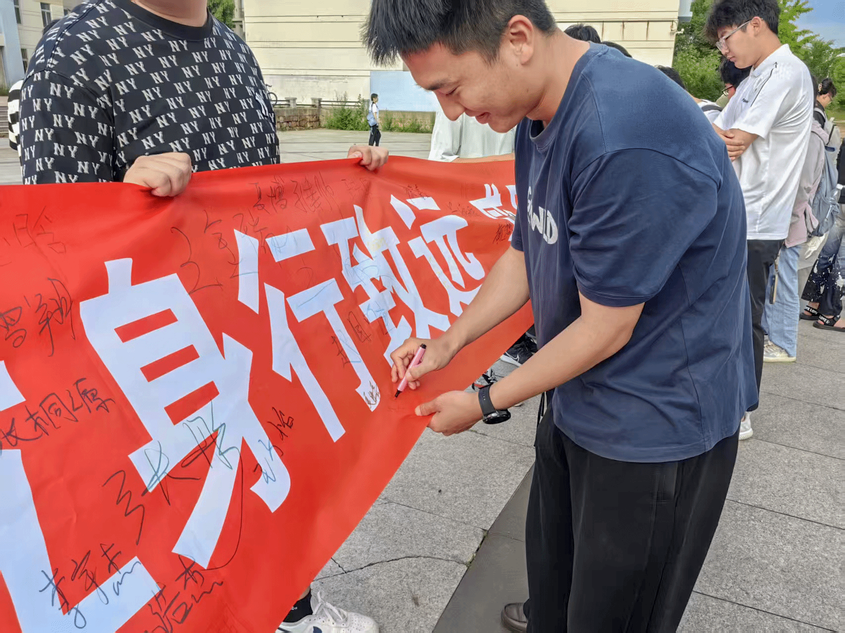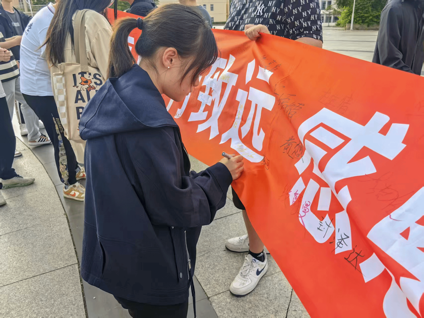 仪式最后,师生们纷纷在“诚信立身行致远 感恩筑梦志凌云”主题条幅上郑重签名,许下诚信做人、感恩社会的庄严承诺。