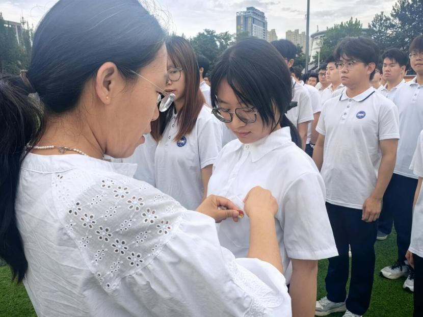 车辆与能源学院团委书记杨春婧、电气工程学院辅导员罗志高宣读了2025年新团员名单。他们向新团员表示热烈祝贺,并勉励他们牢记团员身份,以更高的标准要求自己,发挥先锋模范作用。团干部为新团员代表颁发团员证并佩戴团徽。在领誓人孟佳硕、孙雨情两位同学的带领下,92名新团员及在场全体团员面向团旗,高举右拳,庄严宣誓:“我志愿加入中国共产主义青年团……”铮铮誓言响彻广场,彰显着新时代青年的责任与担当。