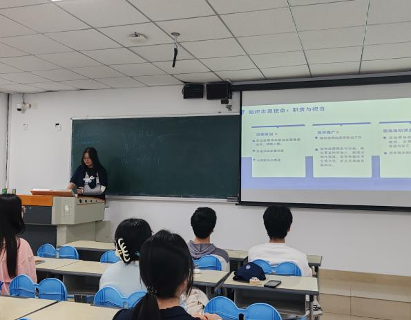 本次研习活动分为专题讲座和优秀学生干部代表经验分享两个环节。社会项目部负责人蓝苏祎以“以勤为本,学生干部的成长之道”为题,深入阐述了“勤”字对学生干部的重要意义。学生干部应以“勤”为核心,做到勤学、勤思、勤行。优秀学生干部代表们分别从不同角度分享了自己在学生工作中如何践行“勤”字精神,包括勤奋学习专业知识、积极组织各类活动、主动服务同学等方面的经验与感悟。这些真实而生动的案例为在场的学生干部们提供了宝贵的借鉴与启示,激发了他们的工作热情与创新思维。