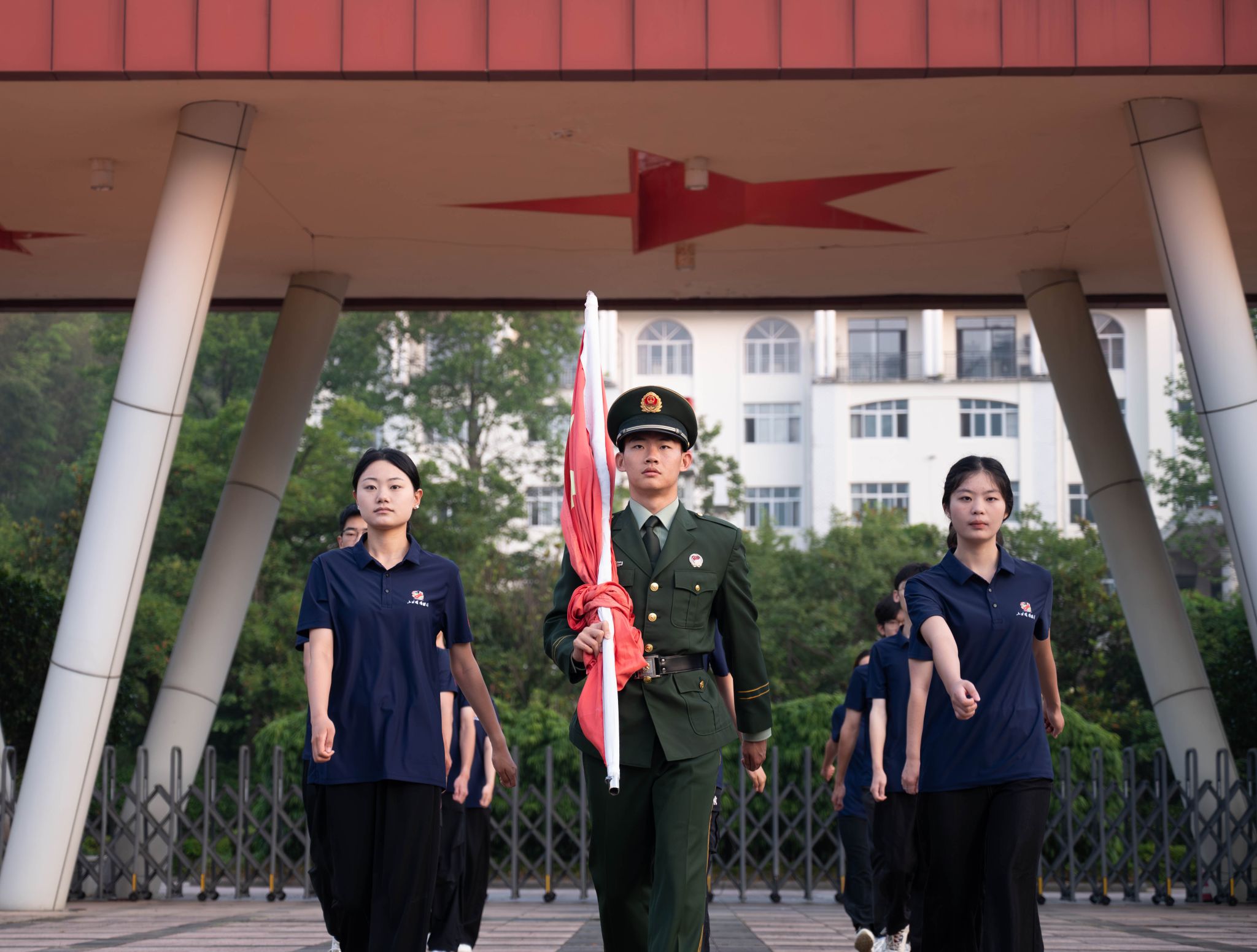 仪式开始,实践团李盛旺身姿挺拔如松,双手稳稳握住旗杆,每一个动作都透着沉稳与力量;护旗手高柏璠并肩而立,眼神锐利如炬;冯柯萌等分列式队员们迈着正步向前,踏得铿锵有力。