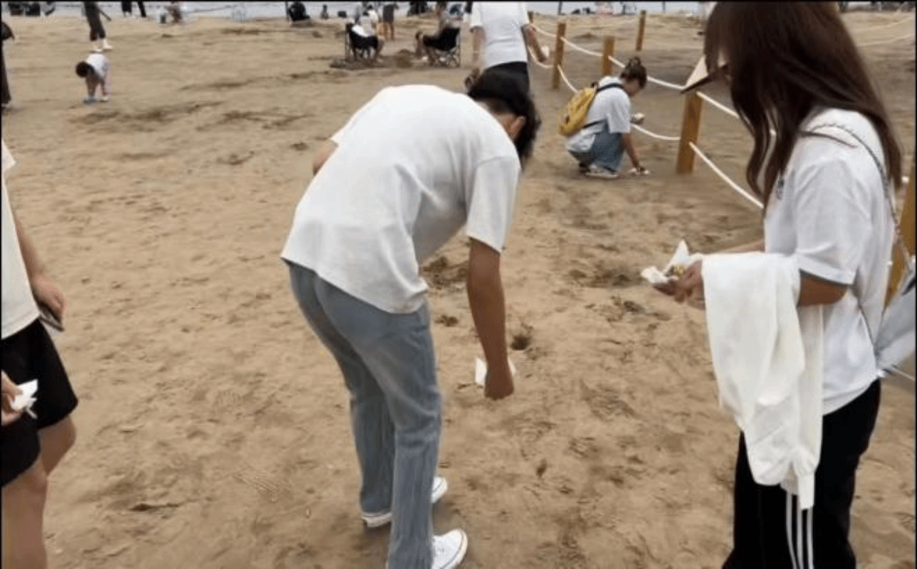 循着前日访谈中收集的民意期盼,8月26日的朝阳刚为海面镀上金边,实践团成员便带着工具奔赴浅水湾浴场,以“净滩行动”践行海洋保护的初心。团队成员们弯腰俯身,沿着滩涂的褶皱、礁石的缝隙与浅水区的边缘,将塑料瓶、废弃渔网等海洋垃圾一一拾起,再细心分类收纳。指尖沾染的泥沙,是与海洋最亲密的对话;袋中渐满的垃圾,是青春守护的坚实印记。这份执着不仅让海滩重拾洁净容颜,更如一束微光点亮了周围游客的心,感召多名群众加入清理行列,使“海洋保护”理念化作共同行动,在浪花与协作中,传递着守护蓝色家园的责任意识与坚定力量。