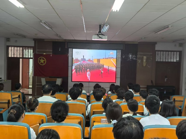 上午8时45分,在学院团委的统一部署下,主会场设于电气工程学院大楼A104报告厅。学院团委书记刘凯老师与学生干部代表一同观看学习。各学生组织骨干代表身着统一的白色上衣、黑色长裤,精神饱满,整齐就坐。与此同时,各学生组织办公室作为分会场,组织其余学生干部同步观看。师生共同怀着崇敬的心情,见证这一铭刻史册的神圣时刻。