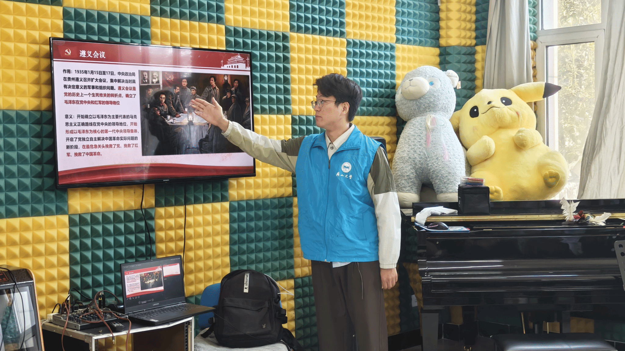 志愿者带领大家学习“飞夺泸定桥、爬雪山、过草地、遵义会议”等经典片段,并诵读《七律·长征》。