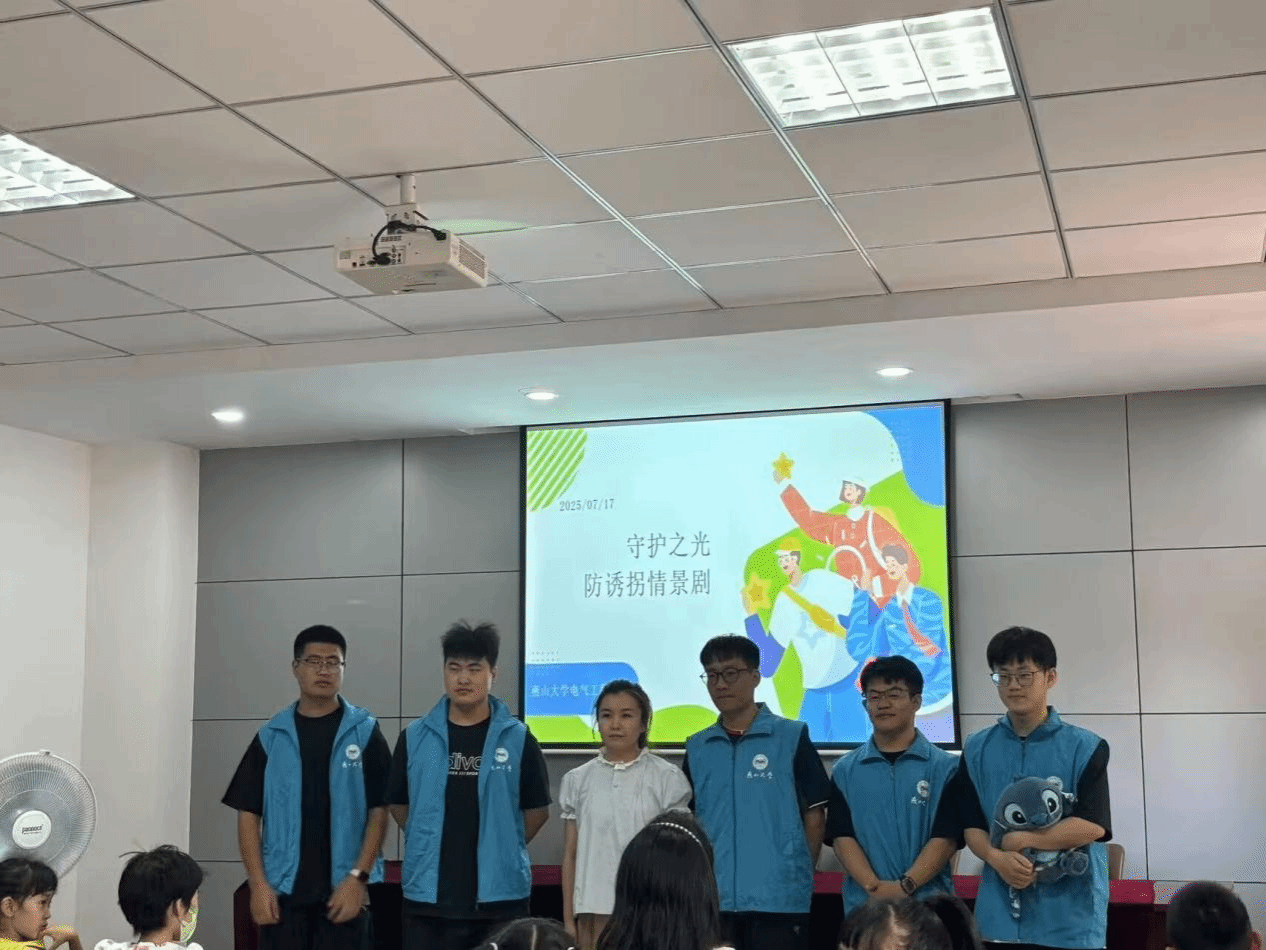 孩子是祖国的花朵,是未来的希望,谨防受骗和被拐卖是孩子们茁壮成长的必修课。实践团通过表演防拐卖情景剧让孩子们深刻体会防拐教育,同时为了让防拐卖情景剧内容更贴合幼儿的生活实际,志愿者们通过上演 “陌生人给零食”“假装是父母的朋友来接人” 等常见的拐骗场景,并制作了色彩鲜艳、形象生动的卡通宣传海报和图文手册,让孩子们能轻松理解剧情所传递的安全信息。