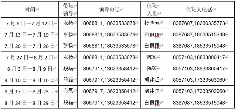 值班时间:每周四上午8:00-12:00、下午:14:30-17:30办公室值班,其他时间请电话联系。