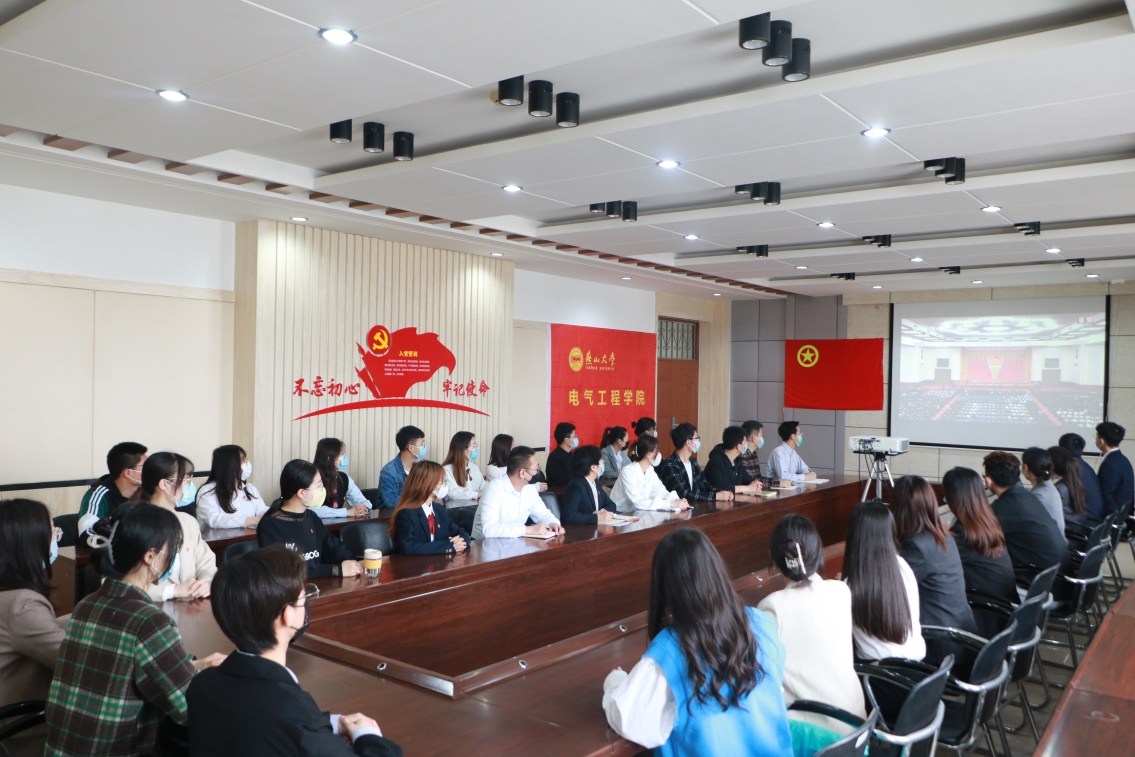 5月10日上午10:00,庆祝中国共产主义青年团成立100周年大会在北京人民大会堂隆重举行,中共中央总书记、国家主席、中央军委主席习近平出席大会并发表重要讲话。电气工程学院团委在电气馆A楼408会议室组织部分青年学生代表共同观看了大会直播。