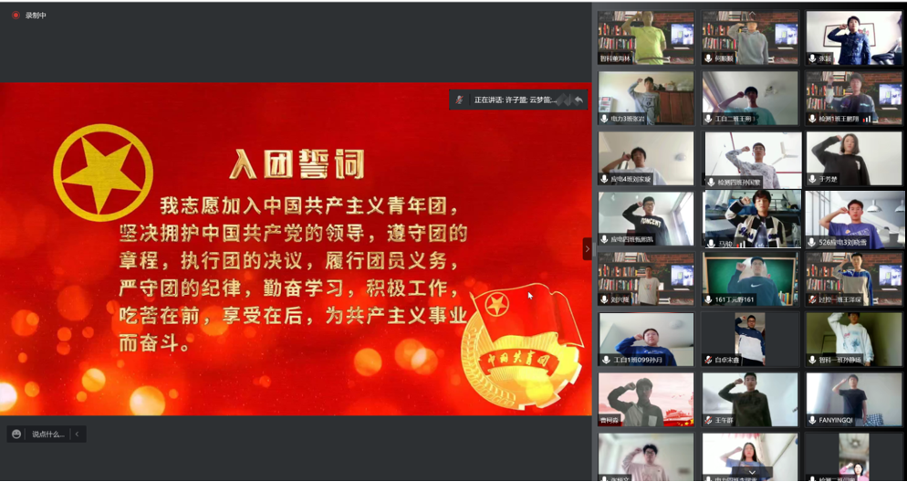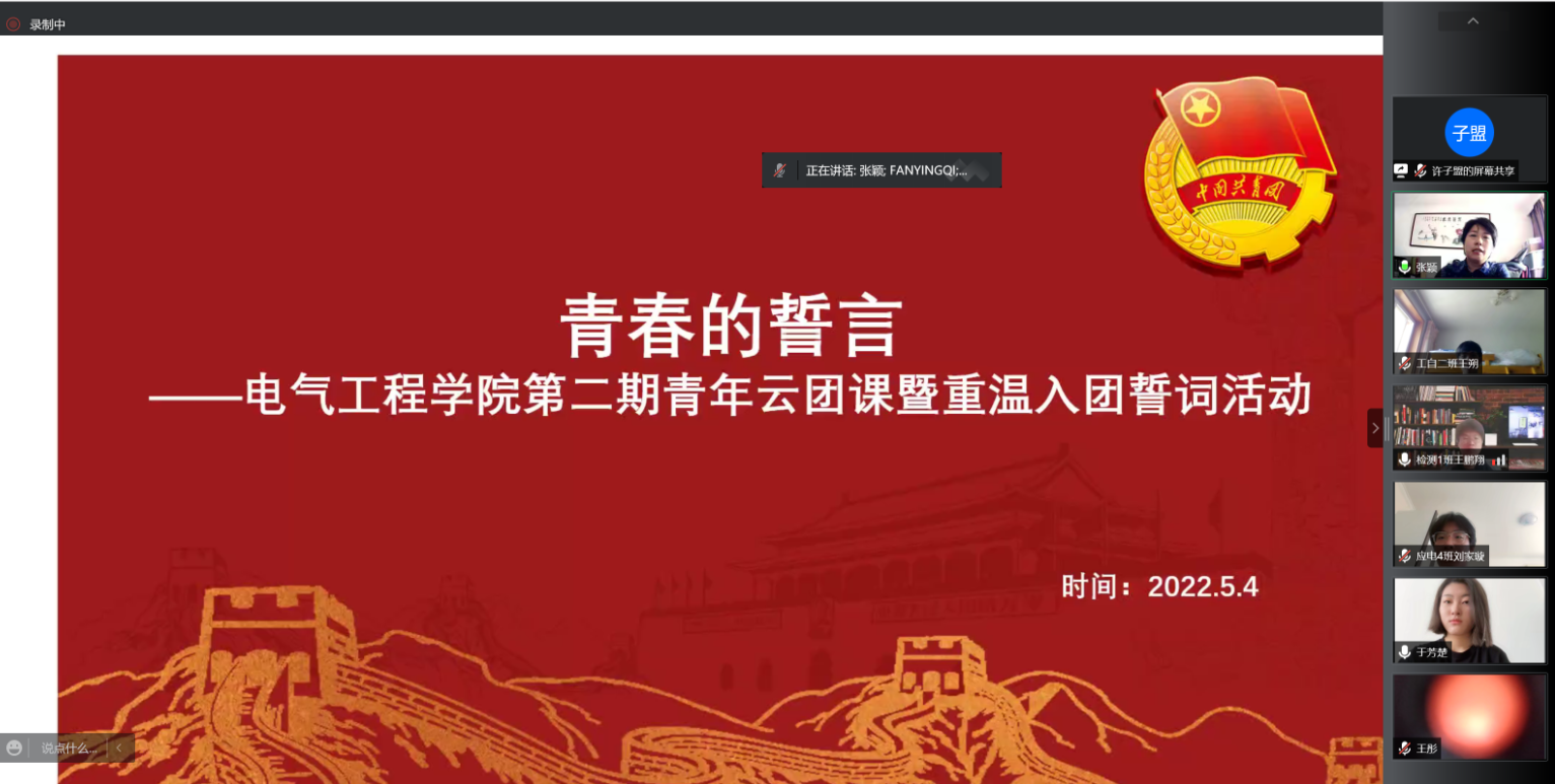在五四青年节来临之际,5月4日上午9点40分,电气工程学院组织召开了第二期青年云团课暨重温入团誓词活动。学院团委书记张颖、部分学生组织和社团代表以及579名团员青年共同参与了此次活动。