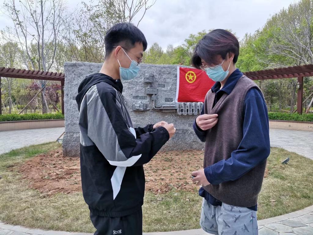 在鲜艳的团旗面前,团委组宣部部门负责人孙国梁带领全体新老团员庄严宣誓:“我志愿加入中国共产主义青年团……”嘹亮的誓言道出了他们心中坚定的信仰和勇于担当的豪情,展现了机械学子积极向上的精神风貌。