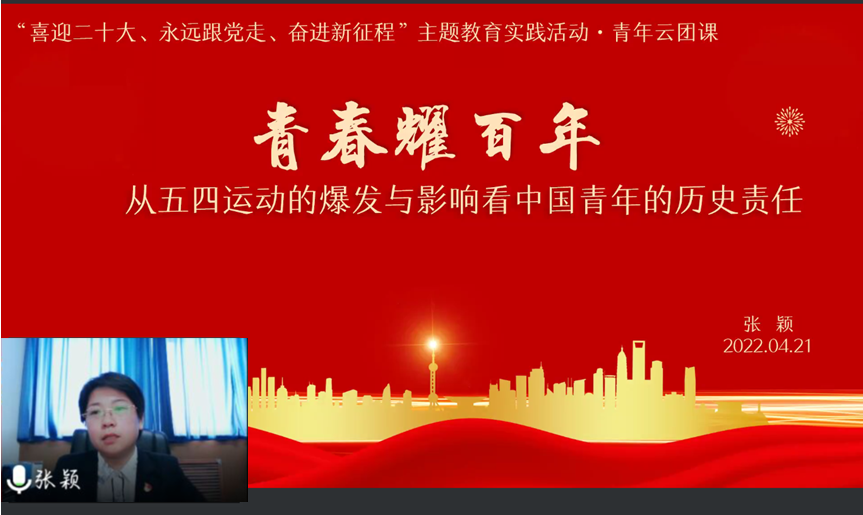 在五四青年即将到来之际,此次活动师生共聚云端,一起从五四运动的爆发与深远影响中,分析和解读了中国青年的历史责任。同学们纷纷表示,接过历史的接力棒,责任满满、信心满满!我们的青年学生,将在党的领导和关怀下,矢志不移,接续奋斗,以更加饱满的热情、更加昂扬的姿态,喜迎建团100周年,喜迎党的二十大!