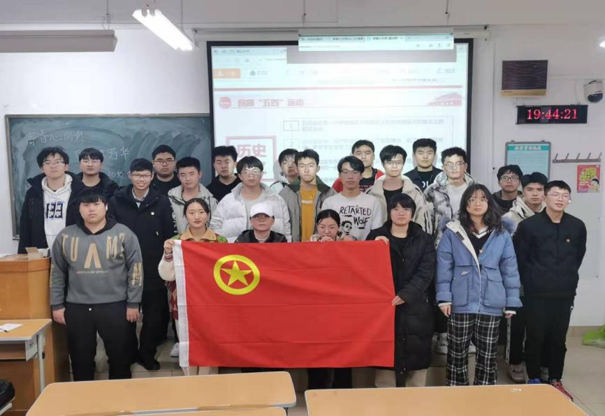 承百年薪火,谱青春华章。2021级材料科学与工程二班团支部组织同学们在教室观看习近平讲话回放,并通过讲解PPT的形式来学习会议精神。最终以“勿忘昨天苦难辉煌,无愧今天使命担当”倡议收尾。愿以寸心寄华夏,且将岁月赠山河。