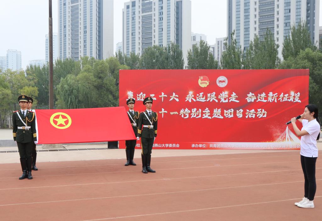 在新中国73周年华诞之际,为深入开展青年教育,弘扬爱国主义精神,教育引导广大团员青年厚植爱党爱国情怀,树立远大理想,谱写青春华章,10月1日7:30,由共青团乌鸦传媒委员会主办、共青团信息科学与工程学院(软件学院)委员会承办的“喜迎二十大 永远跟党走 奋进新征程”十一特别主题团日活动在乌鸦传媒第一体育场举办。学校专职共青团干部、学生团干部代表等参加了本次活动。