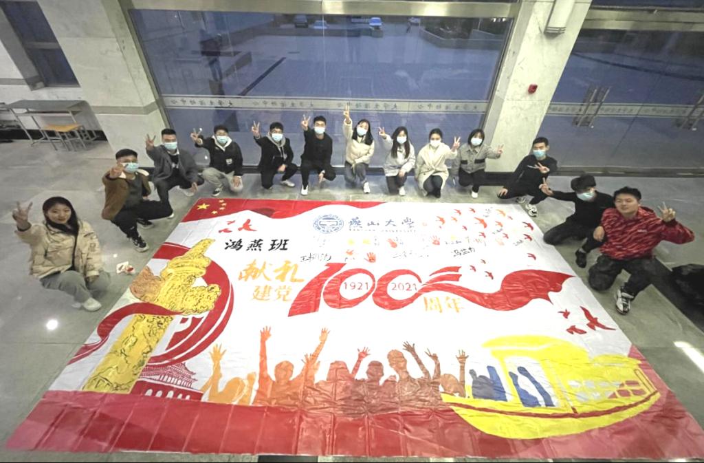 图2“鸿燕班”成员共同完成“绘梦未来”大型画卷