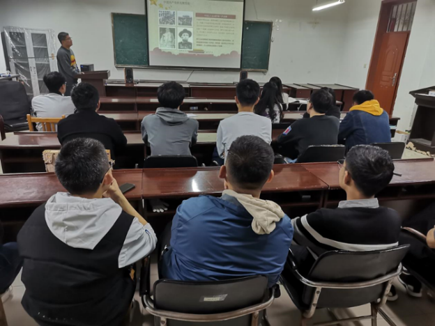 学院青马学员、2018级应用电子技术一班团支部书记贾建阳,于5月4日上午10:00,在西区第二教学楼201室与同学们共同回顾了中国共产党的百年奋斗历程,指出在中国共产党的坚实领导下,全国各族人民前赴后继、顽强奋斗,无坚不摧,与会同学反响强烈,王金龙、赵润达、冯佳杰、张璐镇等同学主动上台分享了自己的学习感悟。