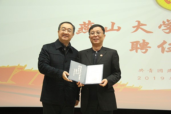 大会现场,李骥同志受聘为我校马克思主义学院兼职教授。聘任仪式上,黄晟为李骥颁发聘书。