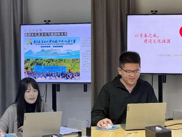 生逢盛世,文化有为。李牧霖同学从淄博烧烤、“大学生特种兵式”旅游等热点问题引入,讲述当代青年如何树立好文化自信、发展好旅游文化;刘鑫达同学从文化强国建设出发,立足校园文化建设,鼓励青年在文化实践中彰显青春风采。