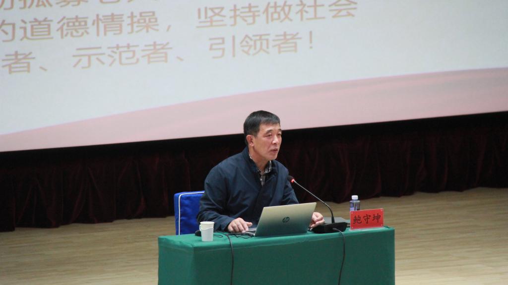鲍守坤热心公益和志愿服务,坚持无偿献血33年,总量超过32万毫升,先后在全国23个省留下了无偿献血的足迹,他先后获得全国模范退役军人、全国优秀志愿者、全国五一劳动奖章、全国道德模范提名奖、全国无偿献血奉献金奖、全国职工职业道德建设标兵、全国百名优秀志愿者等荣誉。鲍书记在讲座中通过分享自身经历,为学员们诠释了一名优秀共产党员责任与担当,引导学员永远做新时代文明实践和社会主义核心价值观的践行者、示范者、传播者、引领者,并用坚定的理想信念、过硬的思想作风和强大的学习能力为自己插上腾飞的翅膀。