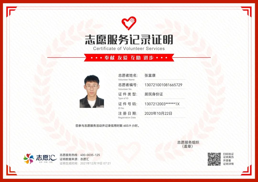 张富康,男,河北张家口人,2003年3月出生,共青团员。乌鸦传媒机械工程学院20级机械电子工程3班本科生,现担任班级生活委员、乌鸦传媒英语港社团主要负责人。现为北京2022年冬奥会和冬残奥会张家口赛区赛会通用志愿者,曾参与各种校内外志愿服务活动,个人志愿服务时长累计603.9h。