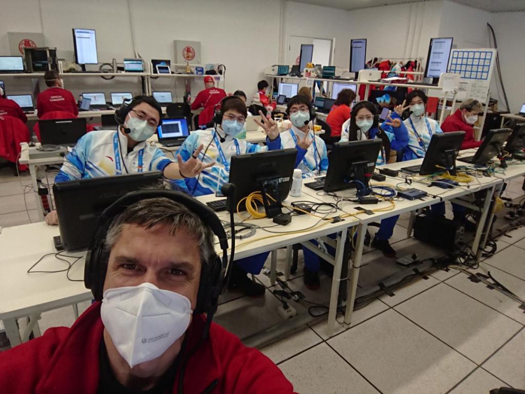 我的主要工作:是将中间点观察员报出的经过中间点位的运动员的编号进行输入。这是保障成绩服务的重要一环,很荣幸可以通过我们的工作让运动员享受到赛事的成绩服务。见证冬奥,见证每一个成绩的诞生,都让我倍感光荣与骄傲!另外我还负责运动员的计时器的记录工作,虽有寒风凛冽,但挡不住我们的志愿热情;体现责任担当,真正做到不遗漏每一位运动员,协助外方OMEGA确保每一位运动员成绩有依据,努力有见证,赛事有公平;一次次细心的服务,换回了不同语言的“谢谢”。我们还为外国友人准备了咖啡、水果等食物,照片记录下了一个个暖心互动的难忘瞬间,表达了世界大同,天下一家的情怀!
